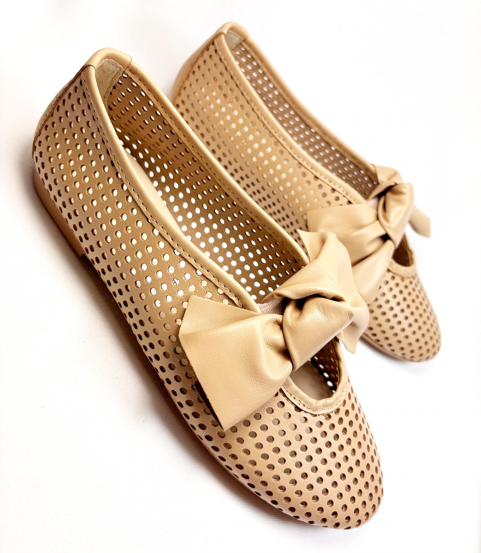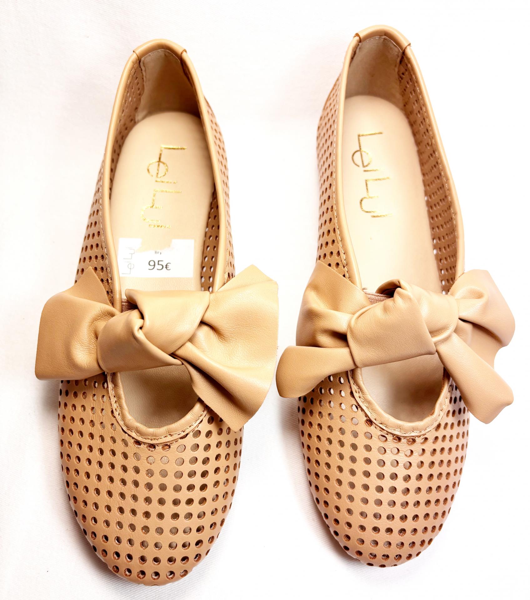 ZAPATITO EN PIEL PICADOS COLOR CARAMELO.