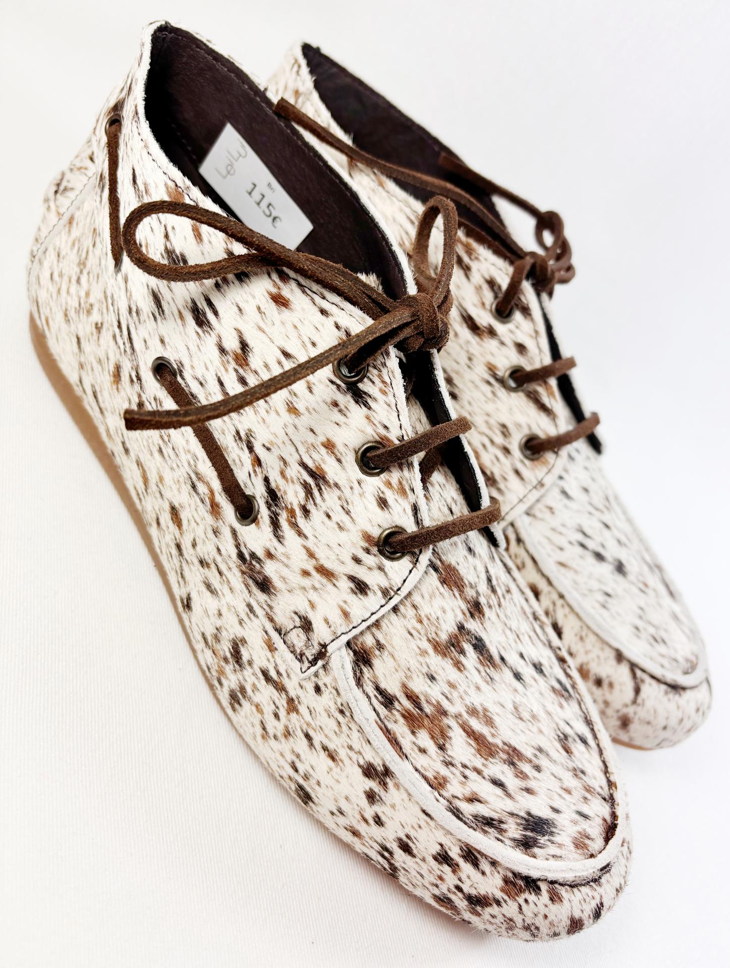 NAUTICO ABOTINADA EN PIEL POTRO ESTAMPADO MANCHAS.