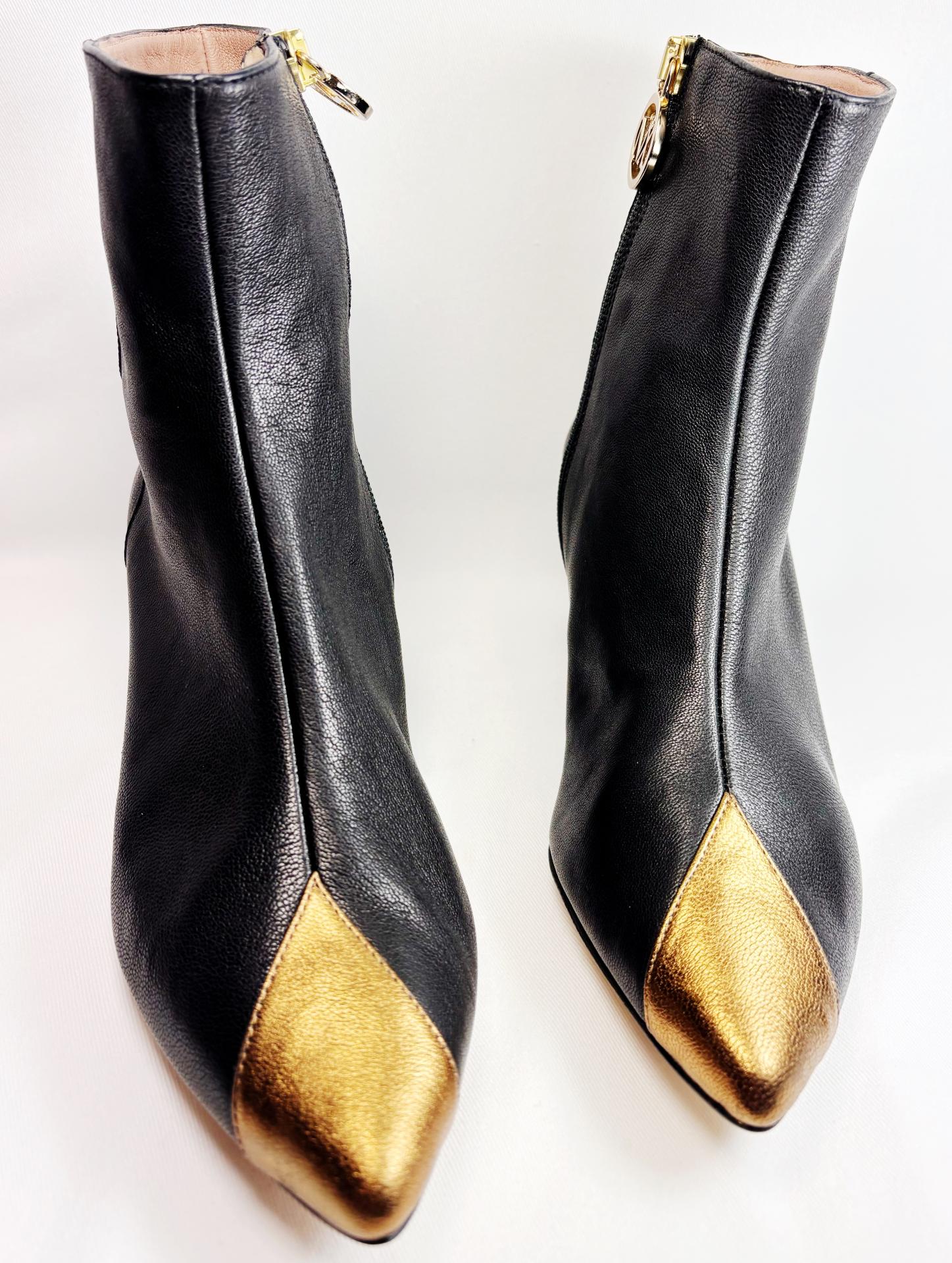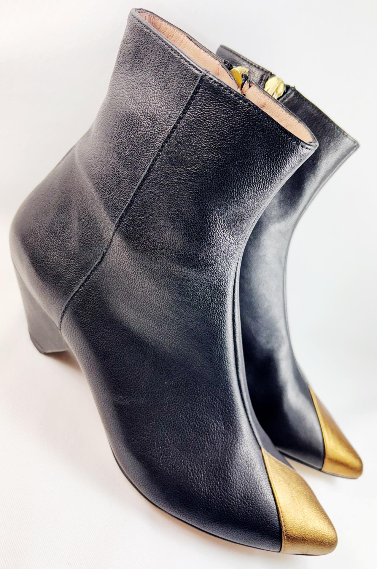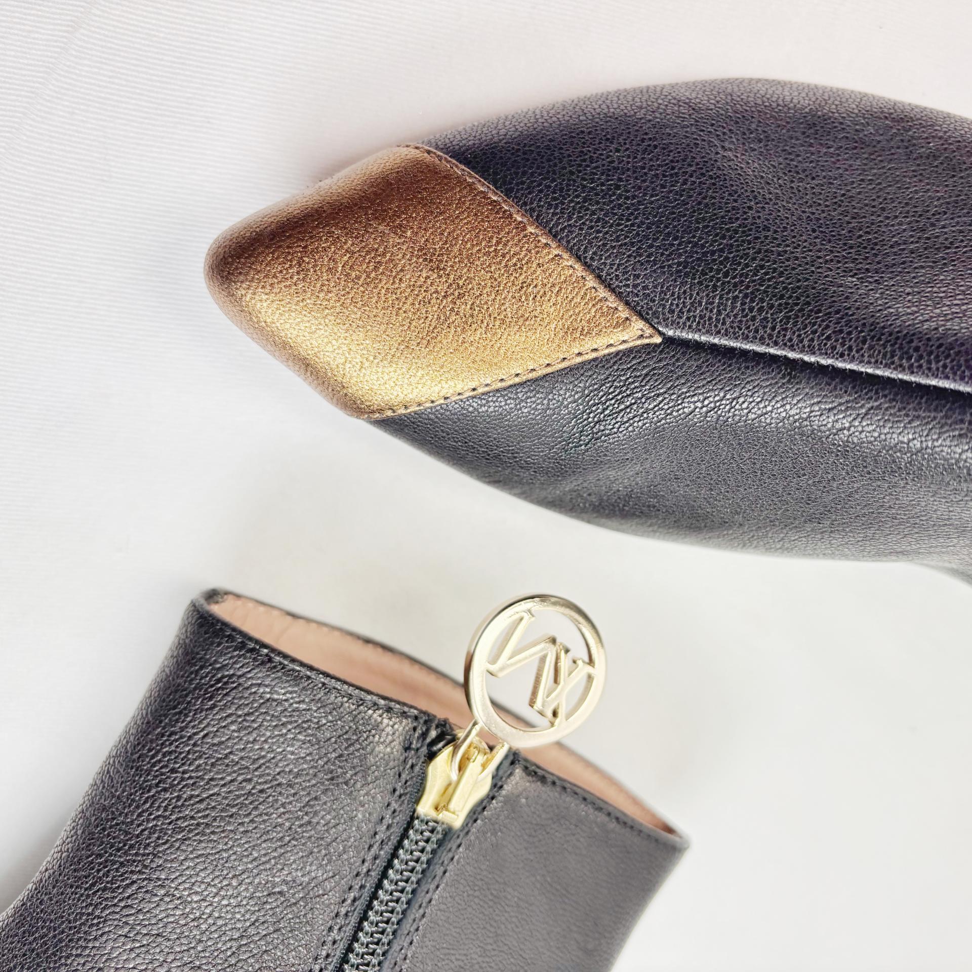 BOTIN NAPA SOFT NEGRA CON PUNTERA EN ROMBO DORADA.