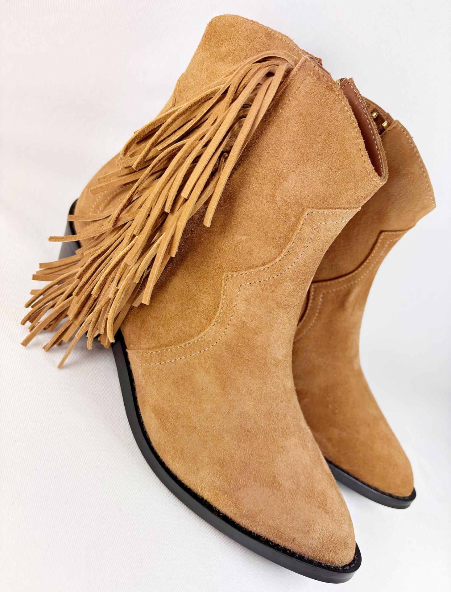 BOTIN ENANTE CAMEL CON FLECOS LATERALES.
