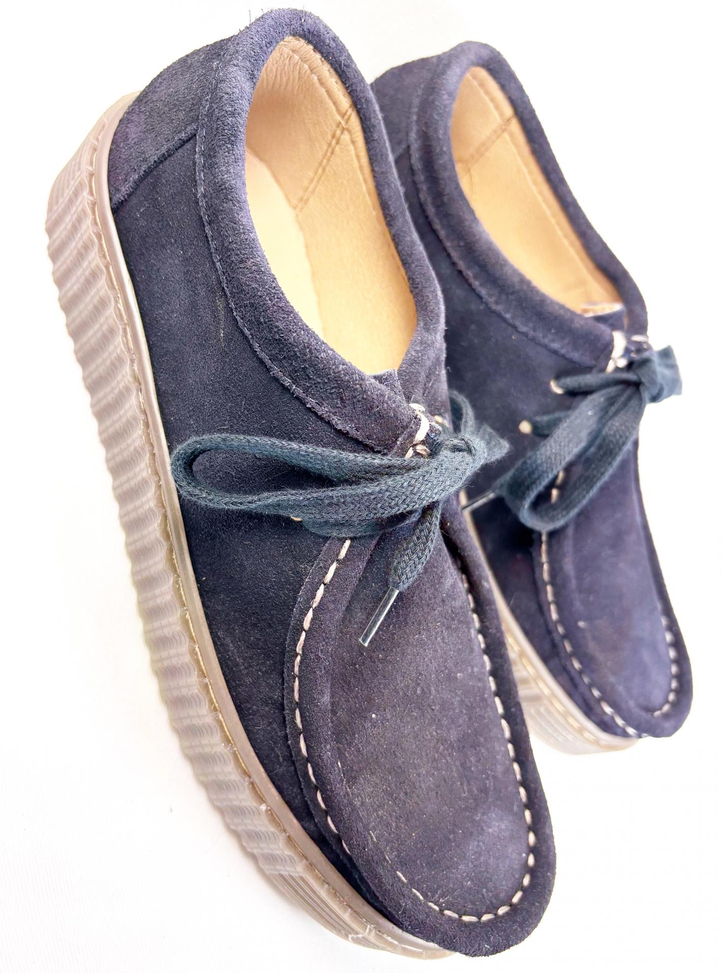 ZAPATO DE CORDONES ESTILO NAUTICO EN SERRAJEAZUL MARINO.