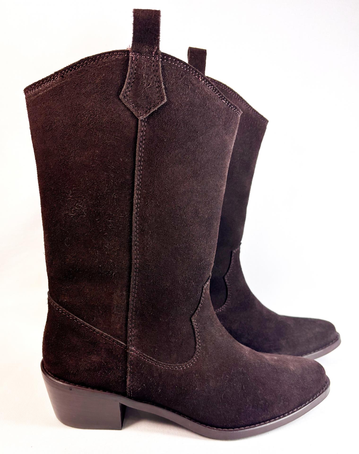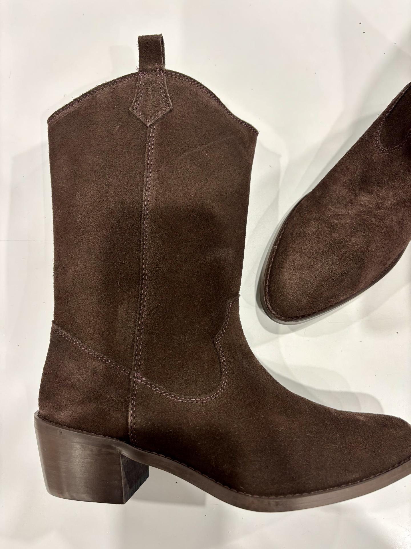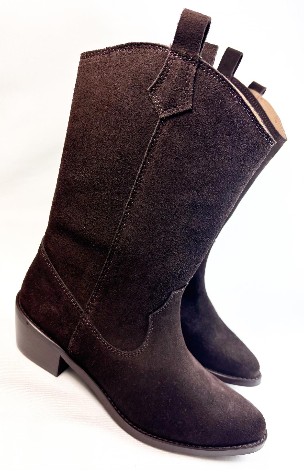 BOTA CAMPERA LISA EN ANTE MARRON CHOCOLATE.