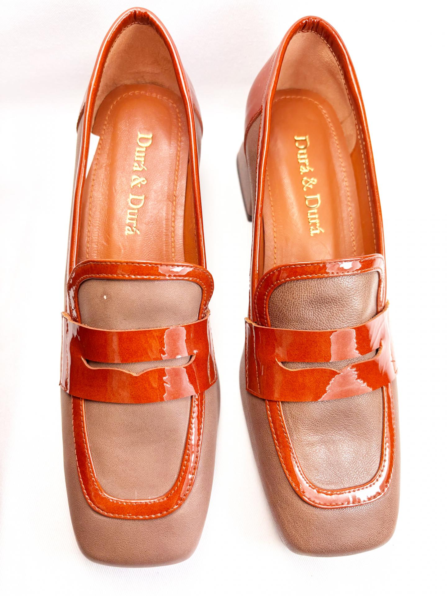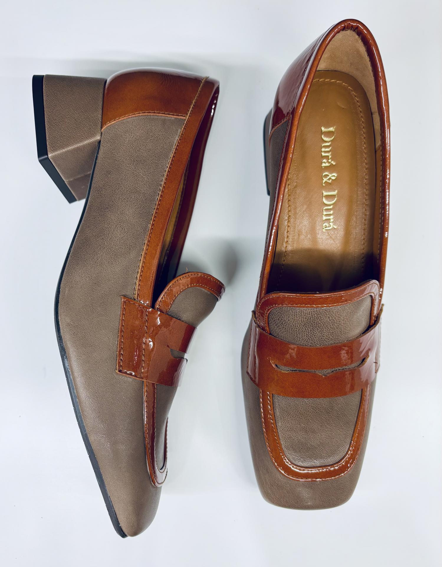 MOCASIN PIEL ACHAROLADA EN TONO PIEDRA CON VIVOS EN CALDERA