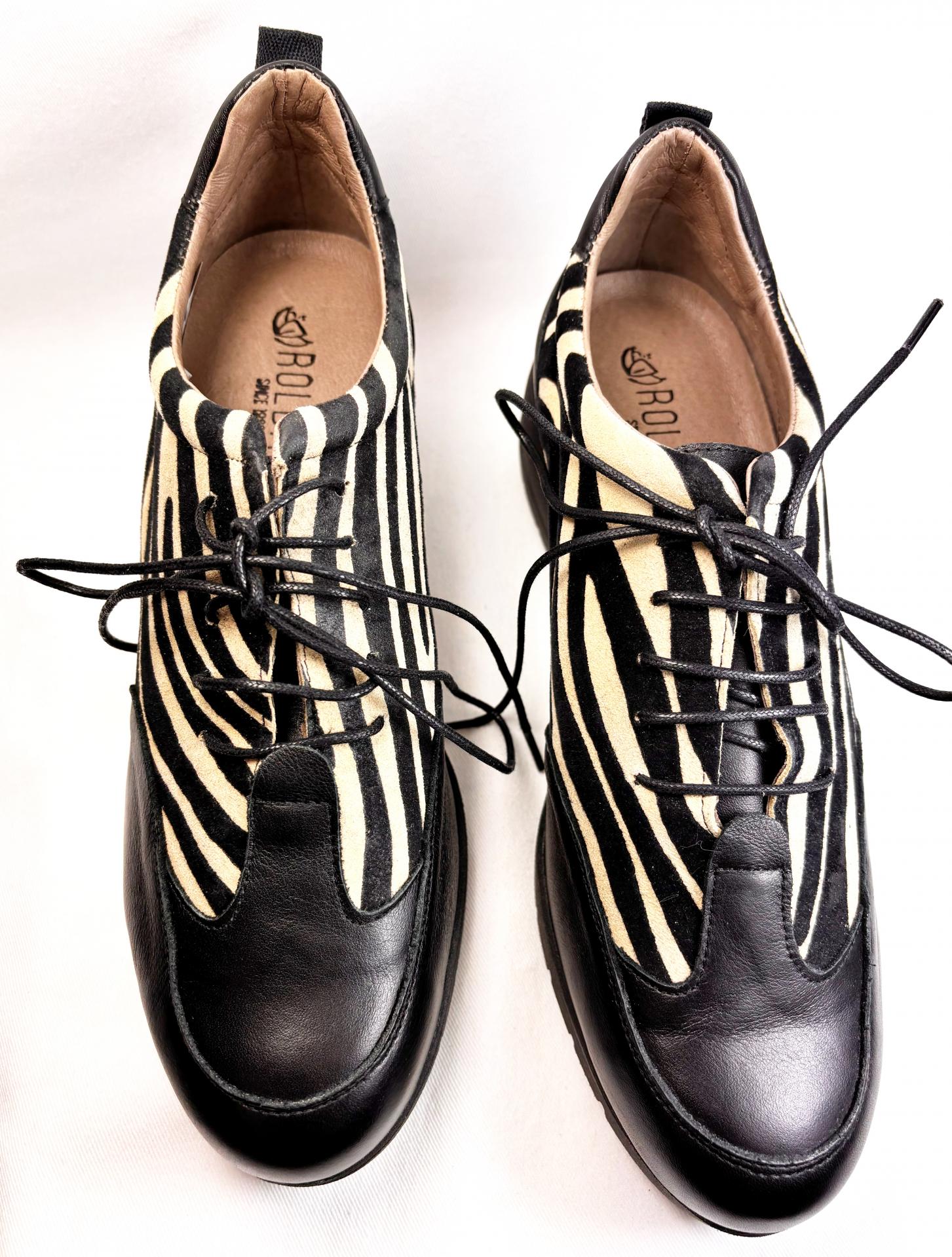 ZAPATO CORDONES ESTILO DEPORTIVO EN NAPA NEGRA Y PRINT CEBRA