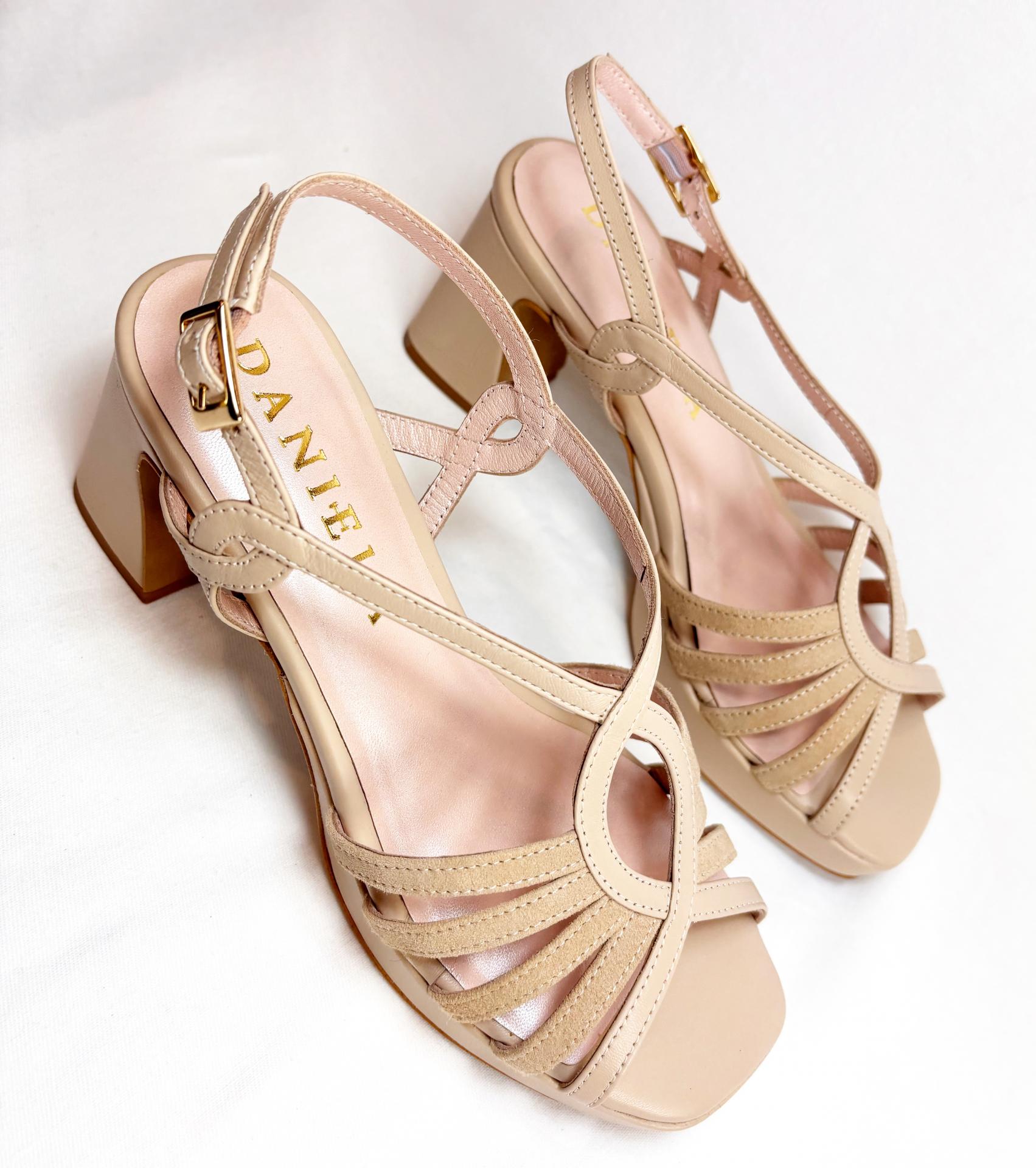PISO MATERIAL Y TACON FORRADO ANCHO Y RECTO ESTILO RETRO DE 8cm CON PLATAFORMA FORRADA DE 3cm.