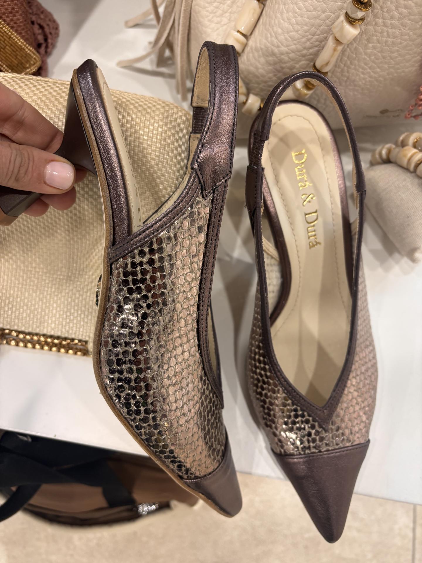 DESTALONADO EN PIEL METAL CAFE Y MALLA DE ESCAMAS DE PIEL BORDADAS