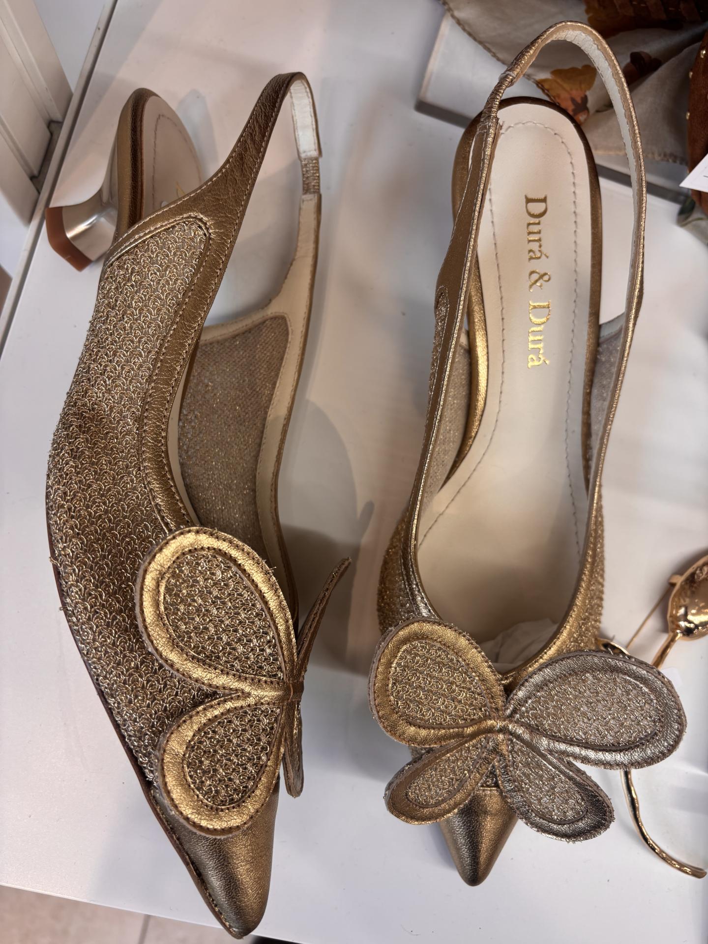 DESTALONADO EN PIEL DORADA Y MALLA DE TUL BORDADA.