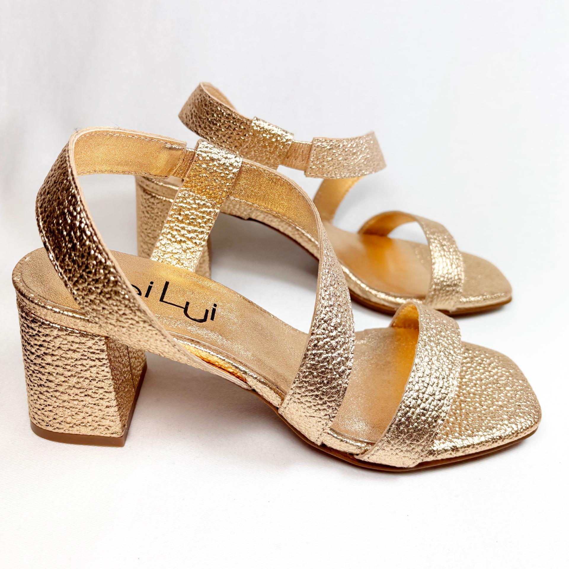 SANDALIA EN PIEL ORO DE TIRAS ANCHAS